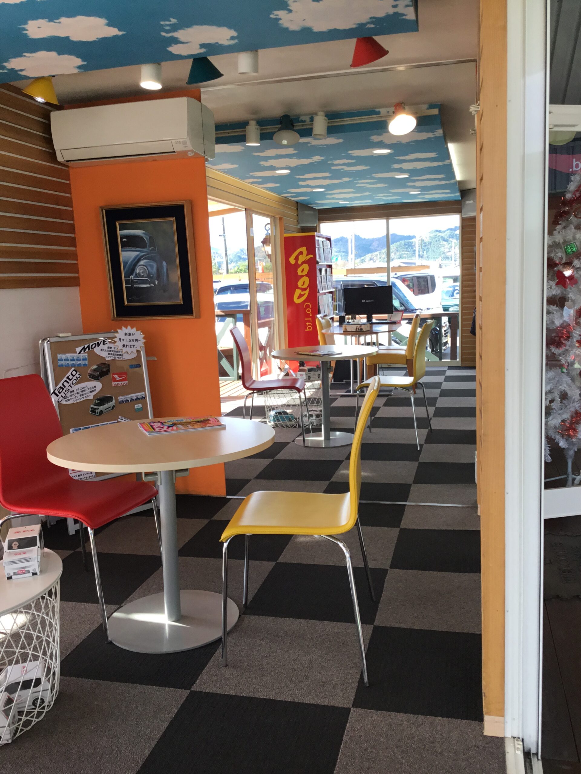 →今すぐ車検予約綺麗な待合室で、ドックランやテラス席もあり、お子様連れやペットと一緒でも、カフェ感覚でお待ちいただけます!
